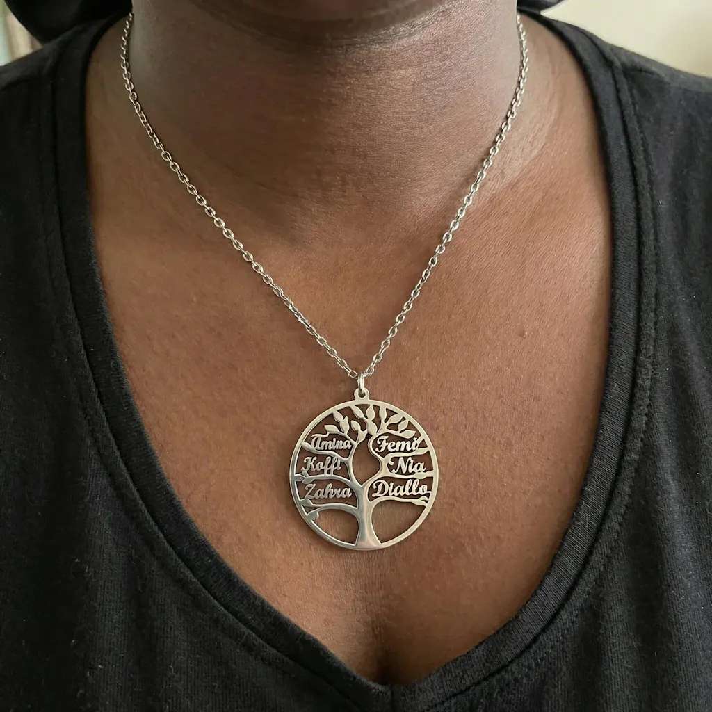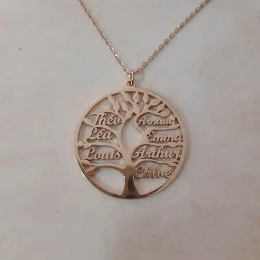 Celebrate the bonds that tie you together with this personalized Tree of Life necklace, a one-of-a-kind piece that carries the names of your loved ones at its heart.